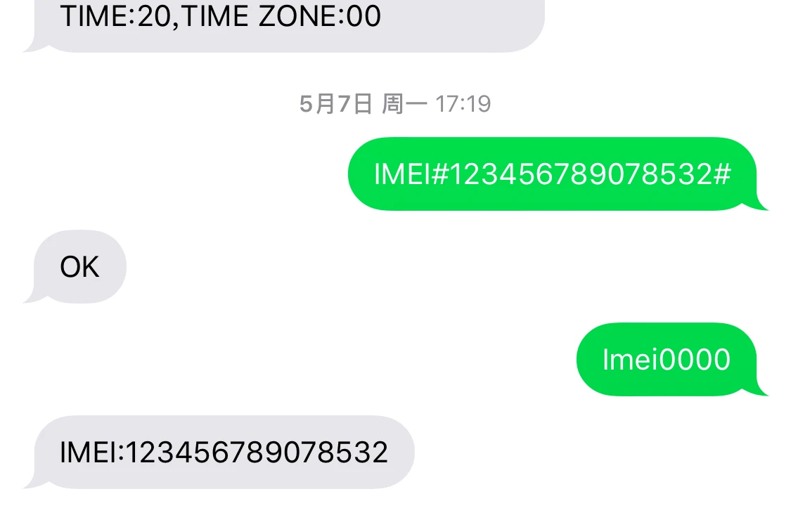 Veuillez envoyer la commande SMS: IMEI #123456789078532 #